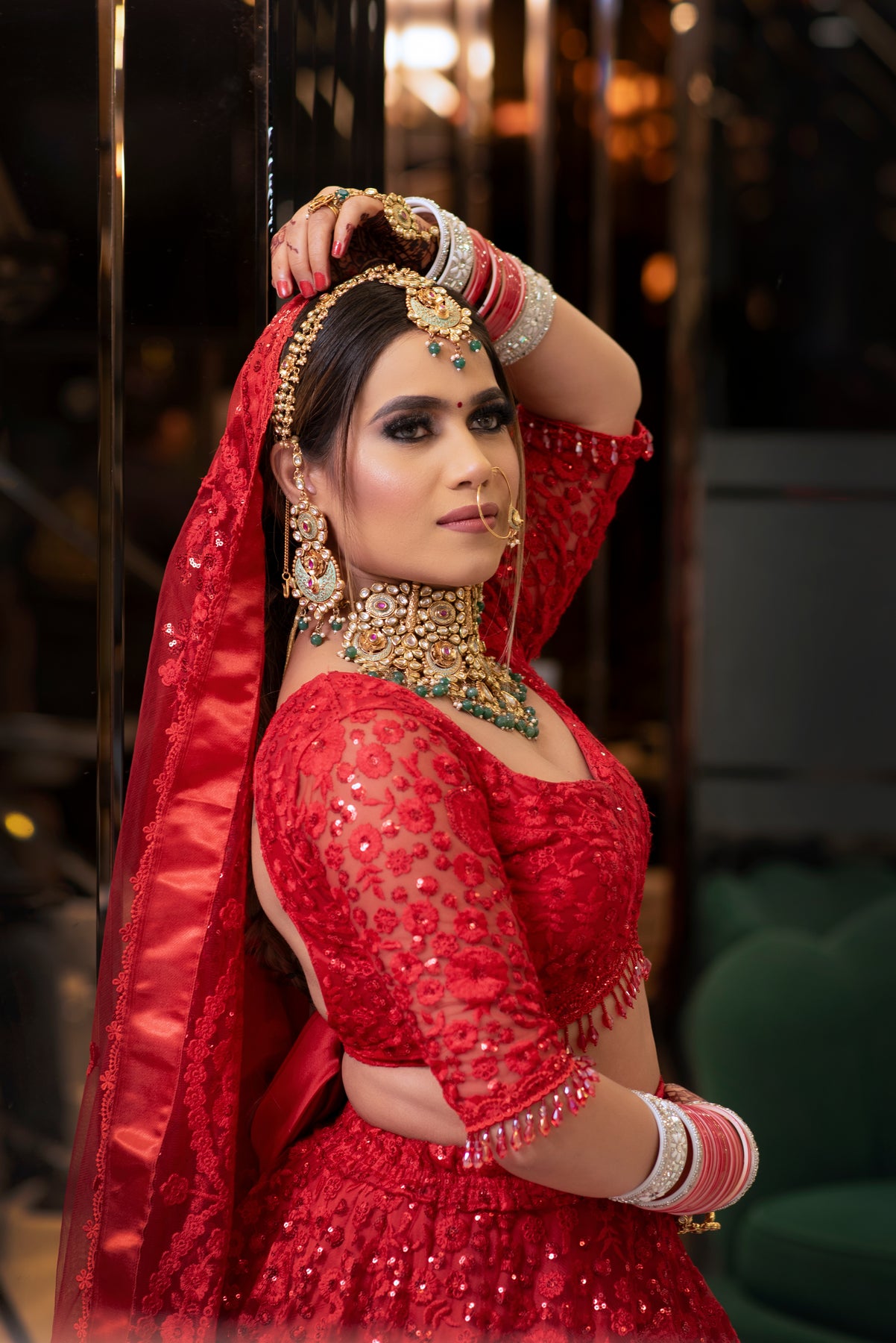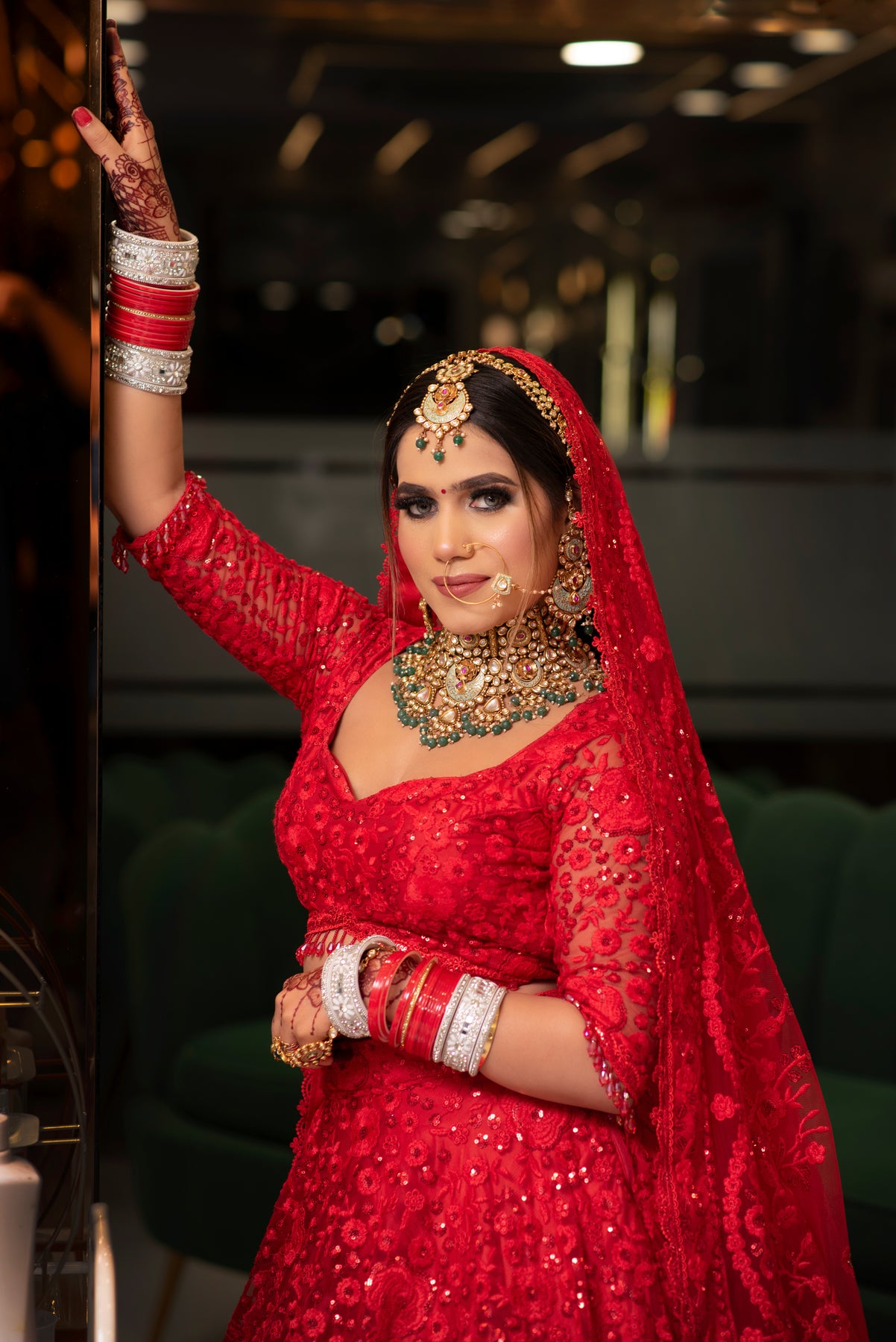 Accessories: Opt for statement jewelry, such as chandelier earrings or a maang tikka, to enhance the bridal vibe.